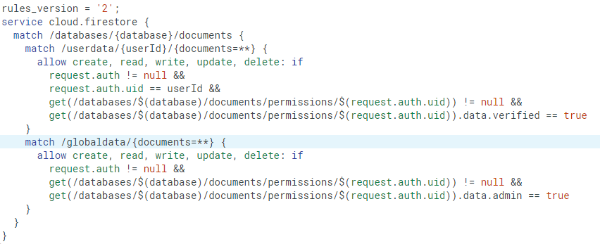 Here for example, you could allow every user with the permission verified to access their own document in the userdata collection,