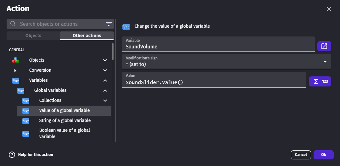 Sliders and toggle switches are useful for creating settings panels. Since the settings panel and the game may be in different scenes, store the value in a global variable to use it across all game scenes.
