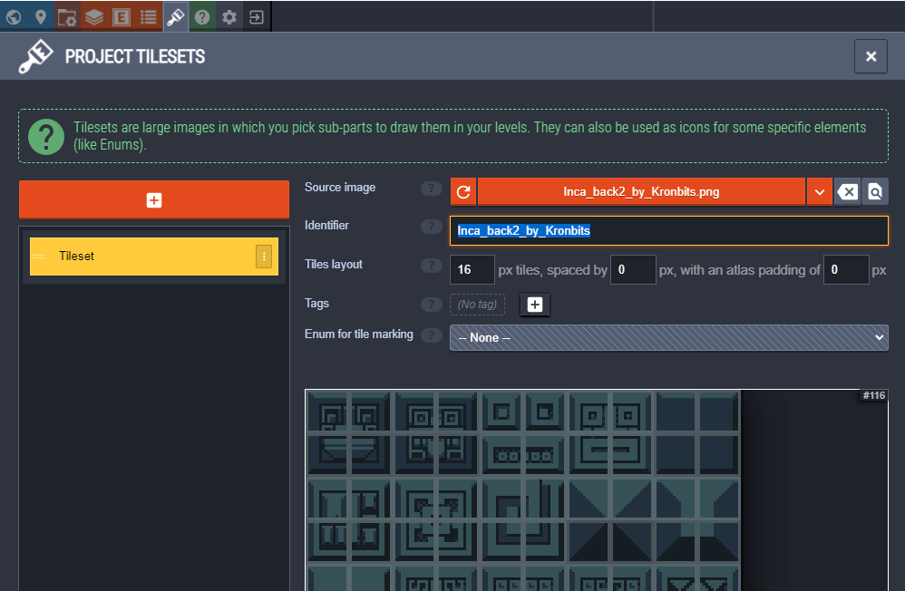 - Select the desired tileset from the dropdown list.