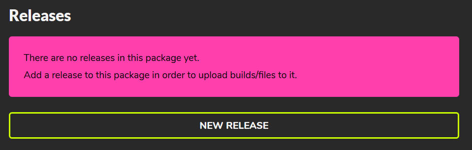 This is the page where you will be handling your game releases. To add your first package, scroll down and click on the New Release button.