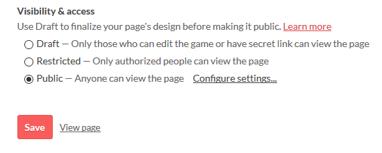 Select the public option and click the Save button.