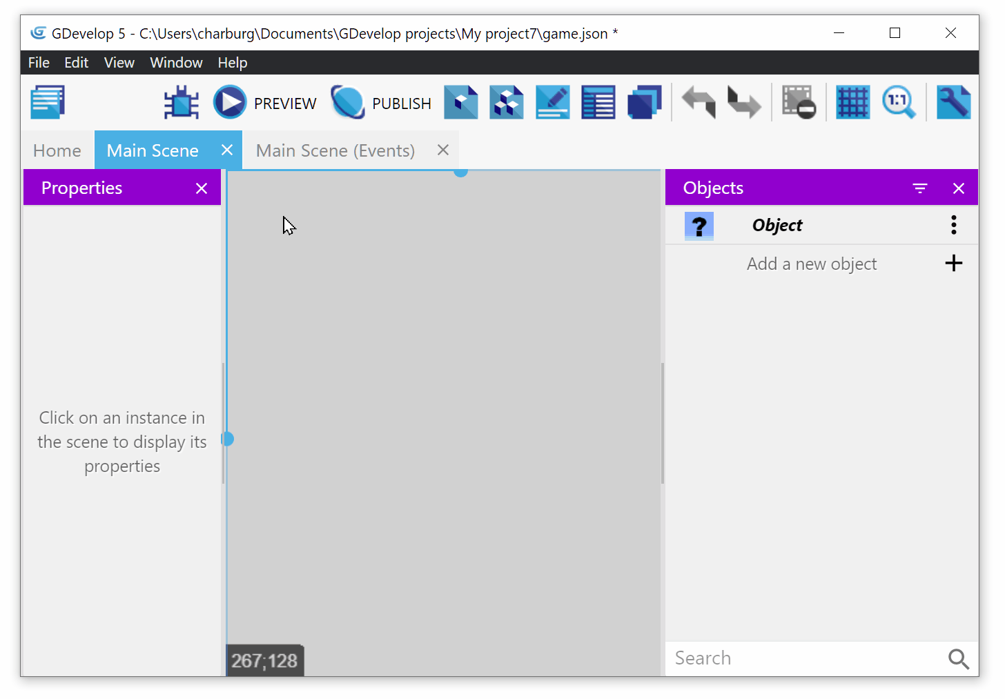 From GDevelop you can publish your games to Windows, macOS and Linux. In order to export our game, click File on the top and select the Export option. You can then choose the Publish on Stores method, followed by the Desktop tab, which will allow you to publish to Windows, macOS and Linux in one-click.